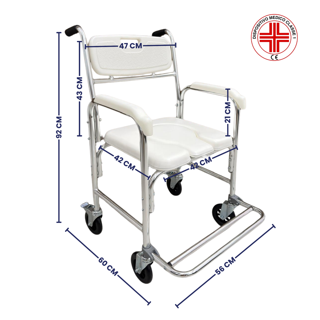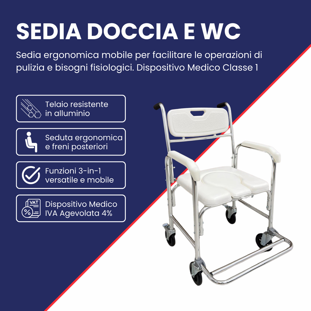 Sedia WC Doccia con Ruote Comoda - Seduta Anatomica in Alluminio, Imbottita, Pieghevole