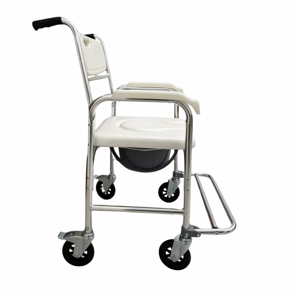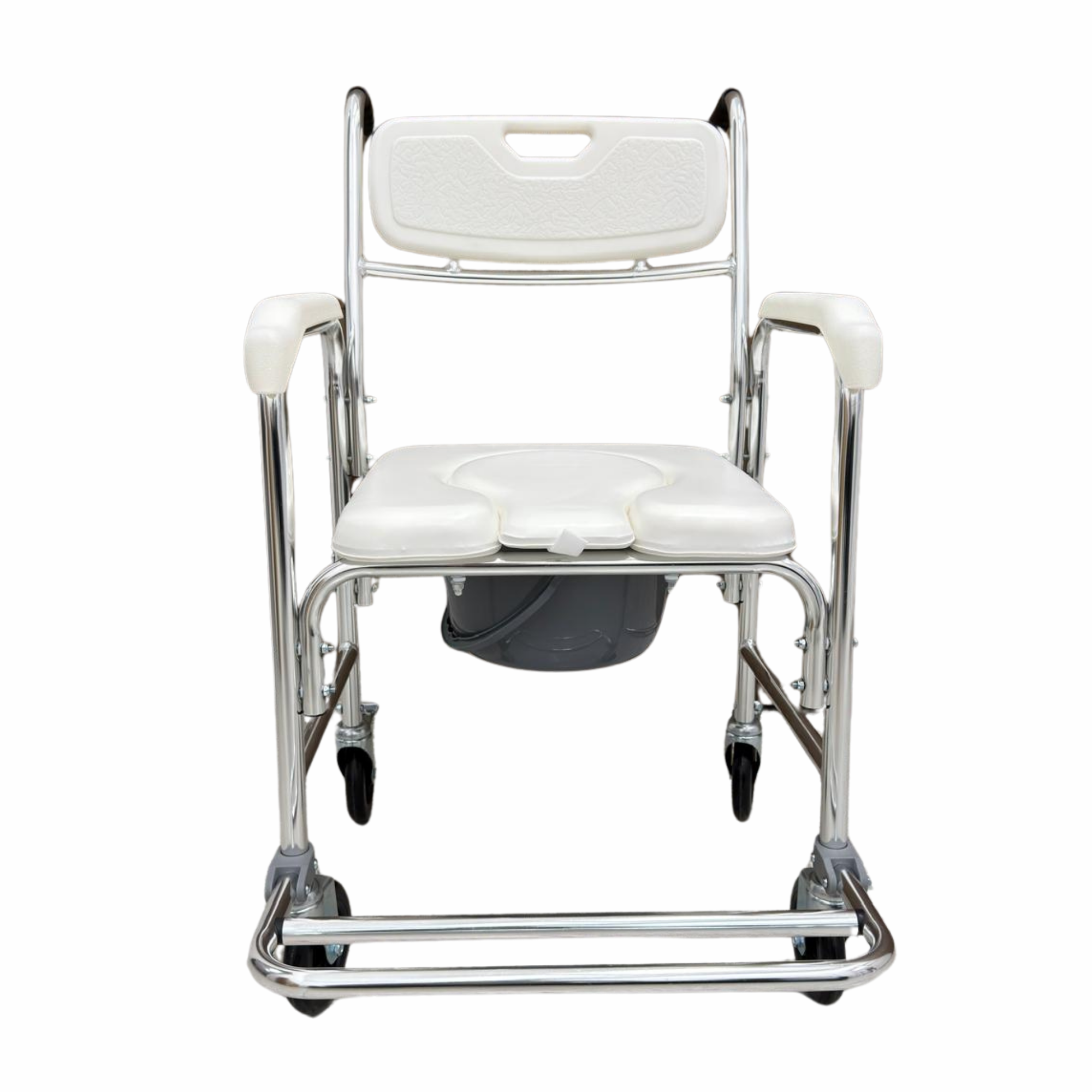Comfort, igiene e sicurezza in un unico ausilio. La Sedia Comoda WC Ferrucci Comfort con Ruote è progettata per semplificare la toilette quotidiana di anziani, persone con disabilità o utenti con mobilità ridotta. La struttura in alluminio la rende leggera e maneggevole, mentre la seduta anatomica imbottita e il WC incorporato garantiscono comfort e praticità. Il design ergonomico con pedaliera pieghevole facilita i trasferimenti e l’accessibilità in bagno.