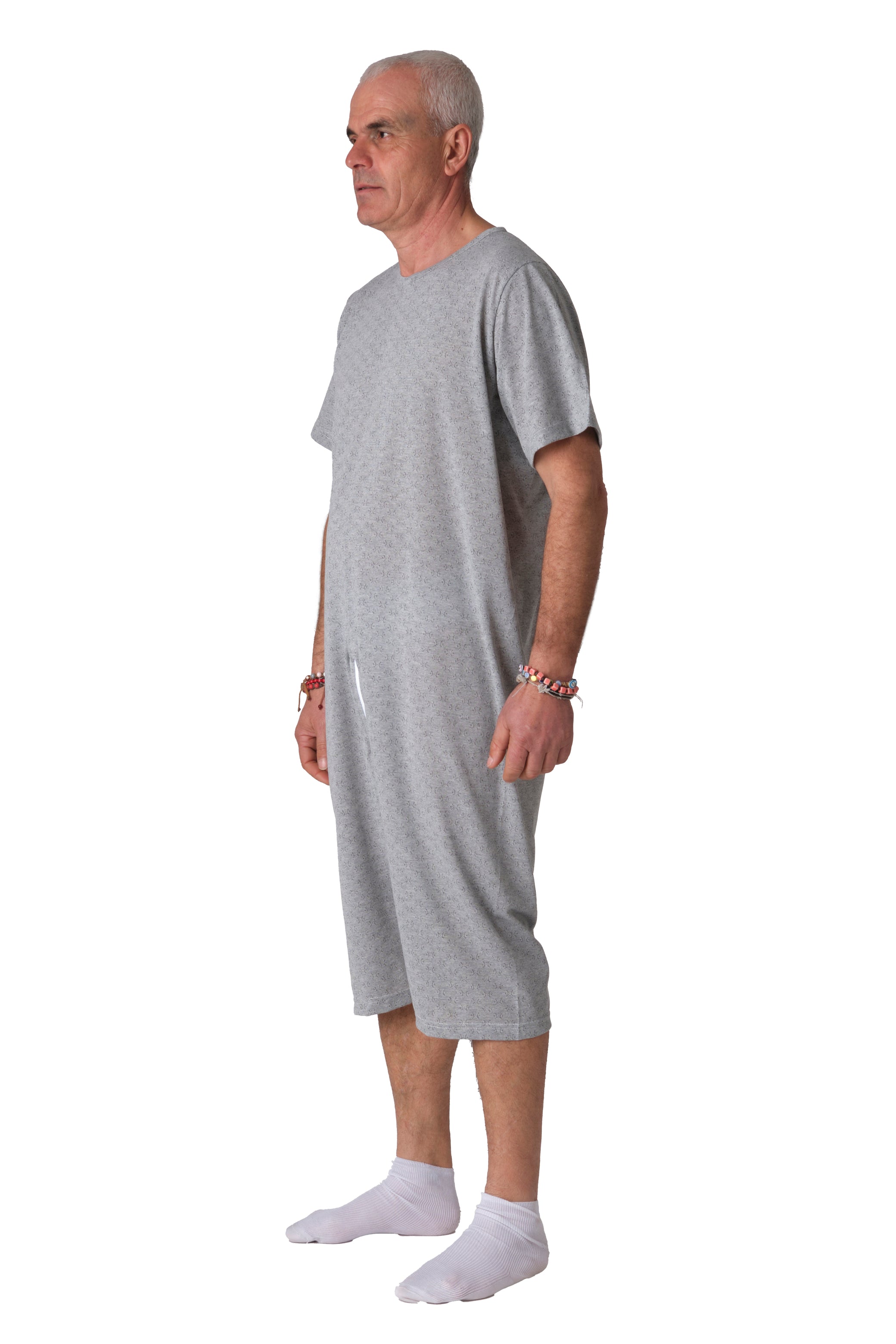 Il pigiama sanitario antibatterico girocollo manica corta e pantalone corto è studiato appositamente per persone con incontinenza, demenza senile, Alzheimer o altre forme di disabilità psichica che presentano insofferenza agli indumenti tradizionali.