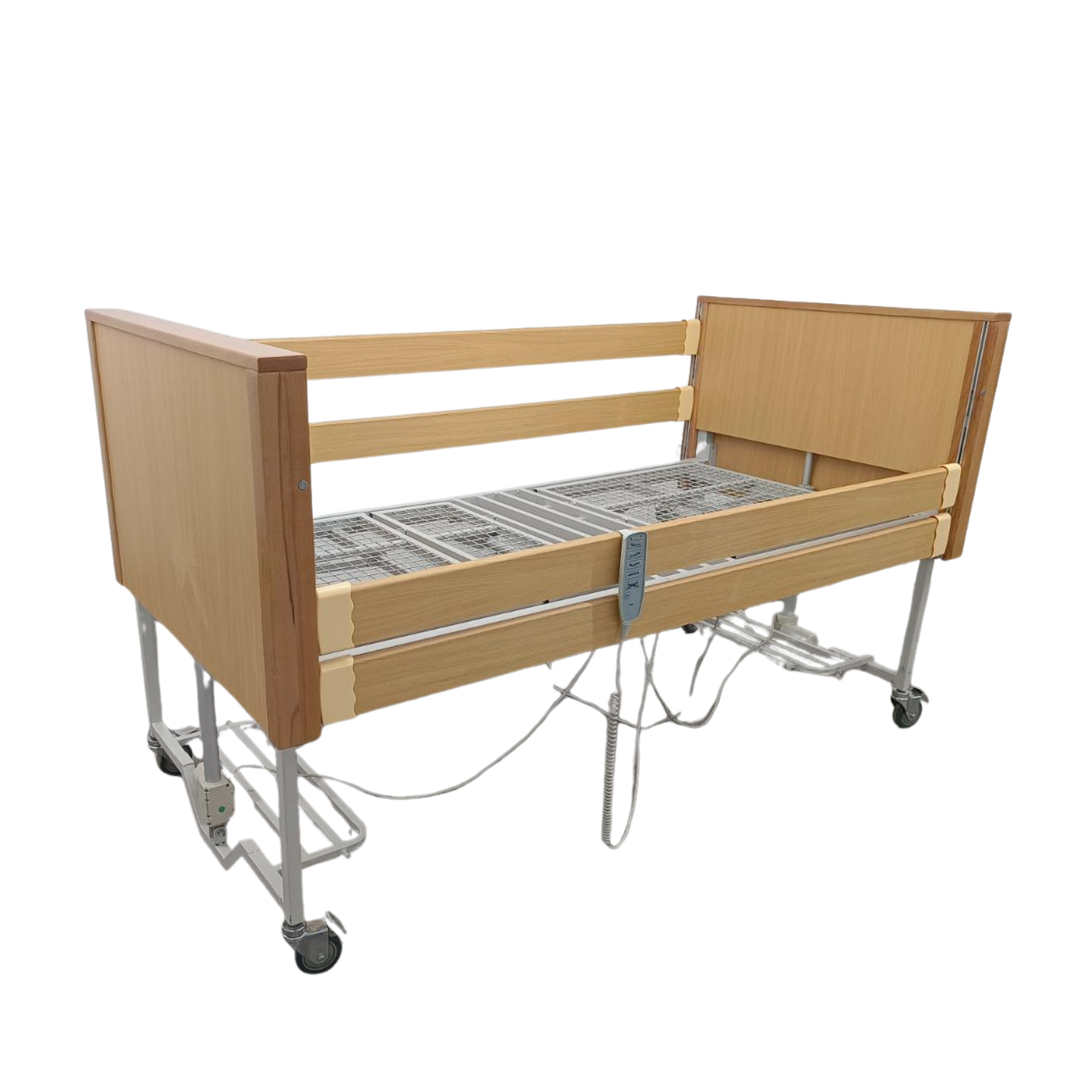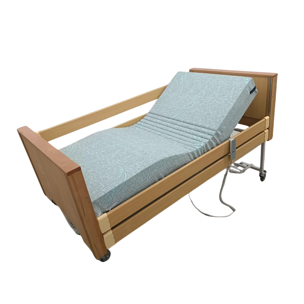 Unisce la sicurezza professionale al calore del design domestico. Letto ortopedico elettrico regolabile in altezza e inclinazione, completo di sponde in legno massello progettato per letti elettrici. Il letto è un Dispositivo Medico Classe 1 - beneficia di Iva agevolata al 4%.