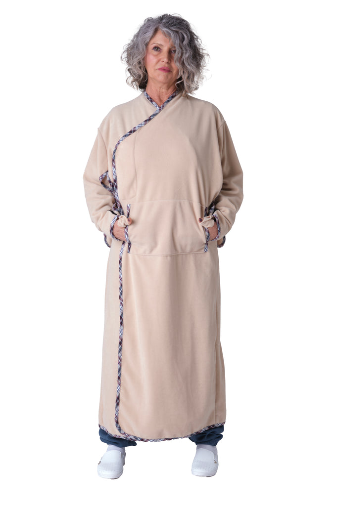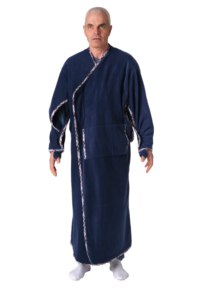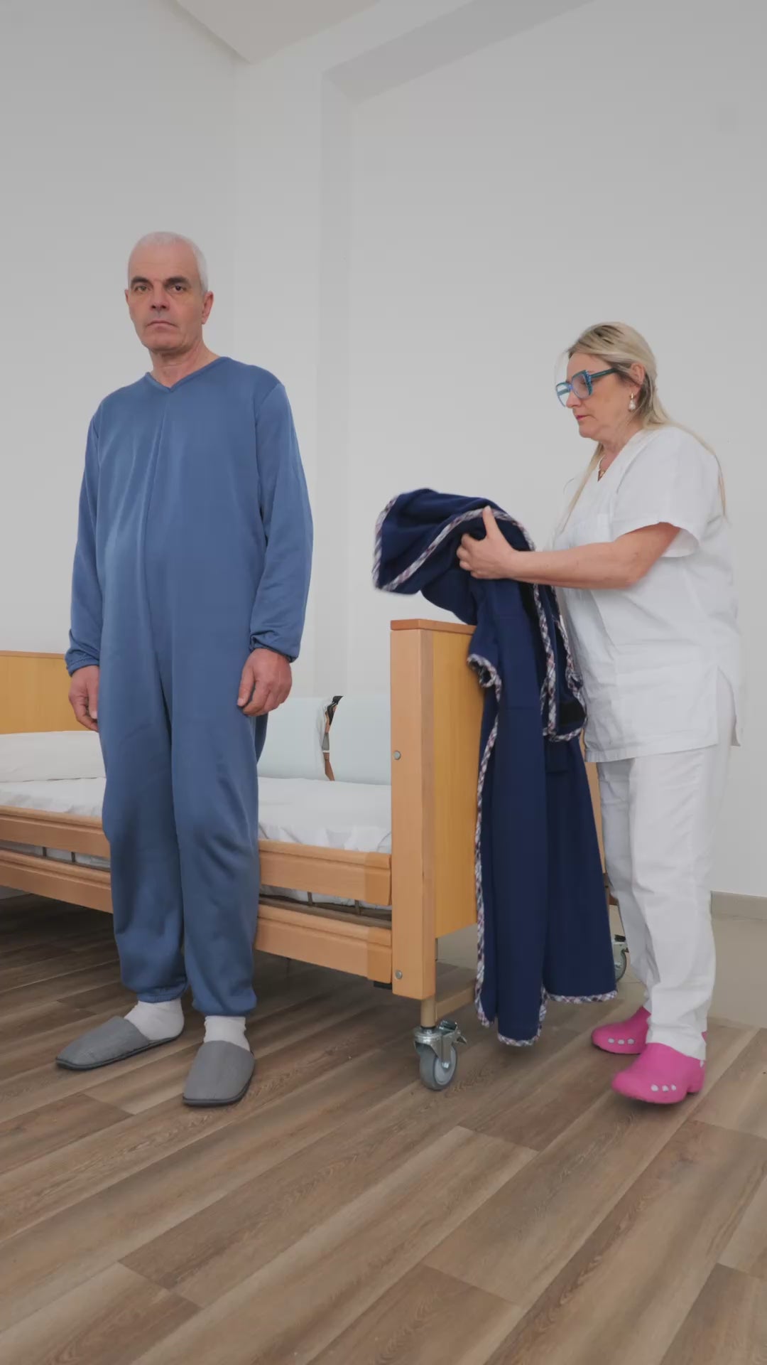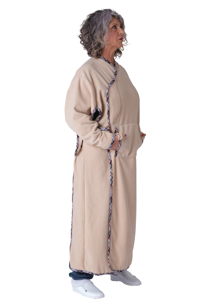 Grazie alle aperture laterali con chiusura in velcro la coperta è estremamente facile da indossare e da togliere: una soluzione ideale sia per chi la utilizza in autonomia, sia per i caregiver e assistenti che devono agevolare la vestizione. Facile da indossare anche stando comodamente seduti.