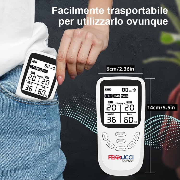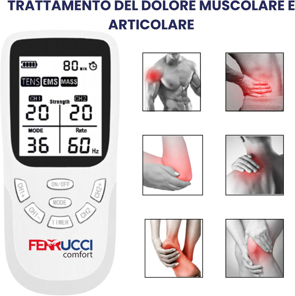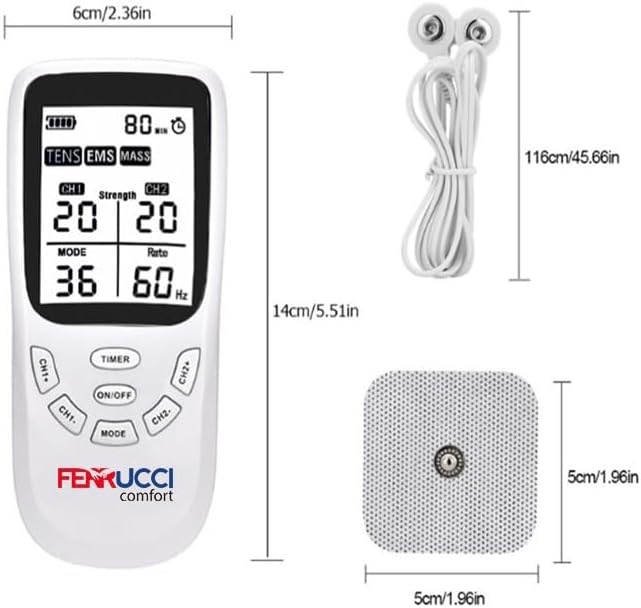 2-Channel TENS Electrostimulator with 60 programs, ideal for treating acute or chronic pain symptoms. Medical Device.