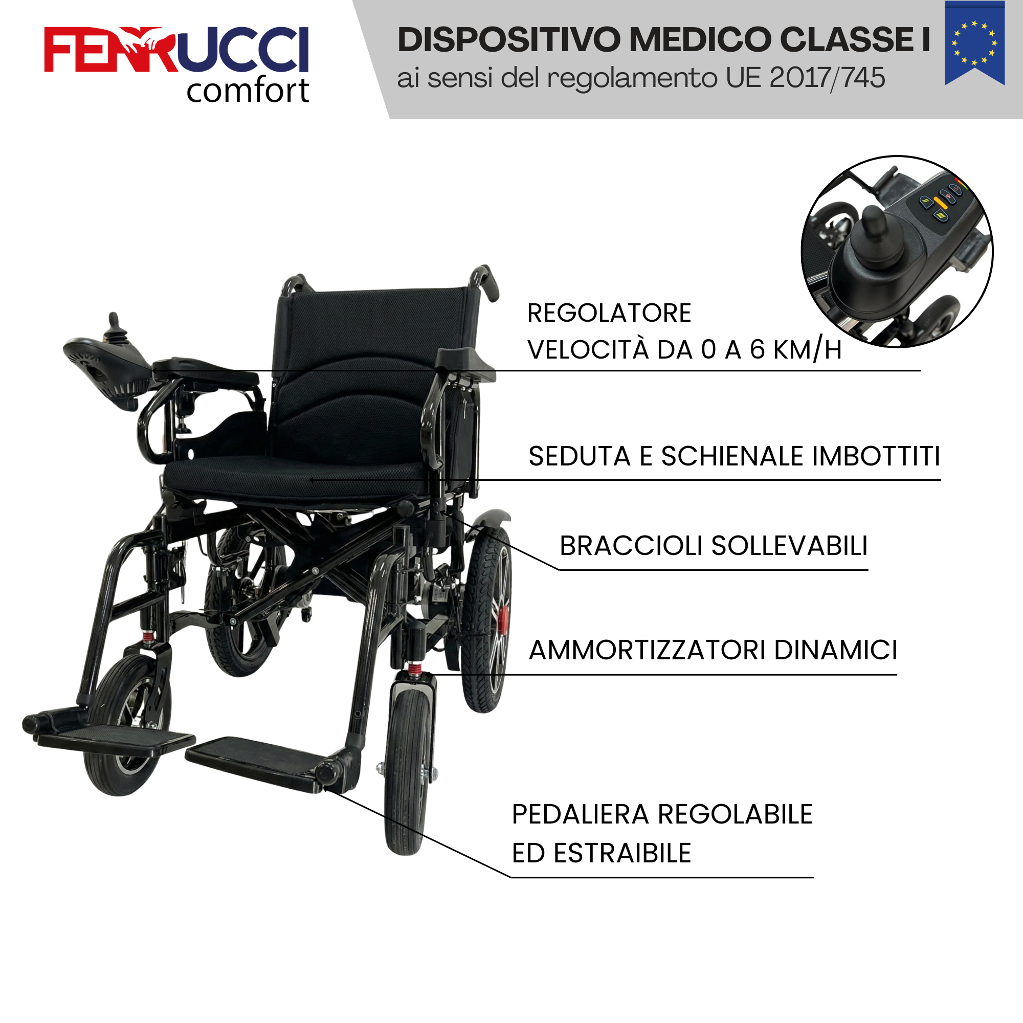 Sedia a Rotelle Automatica Elettrica Pieghevole, Autonomia 20 Km, Professionale, Nera