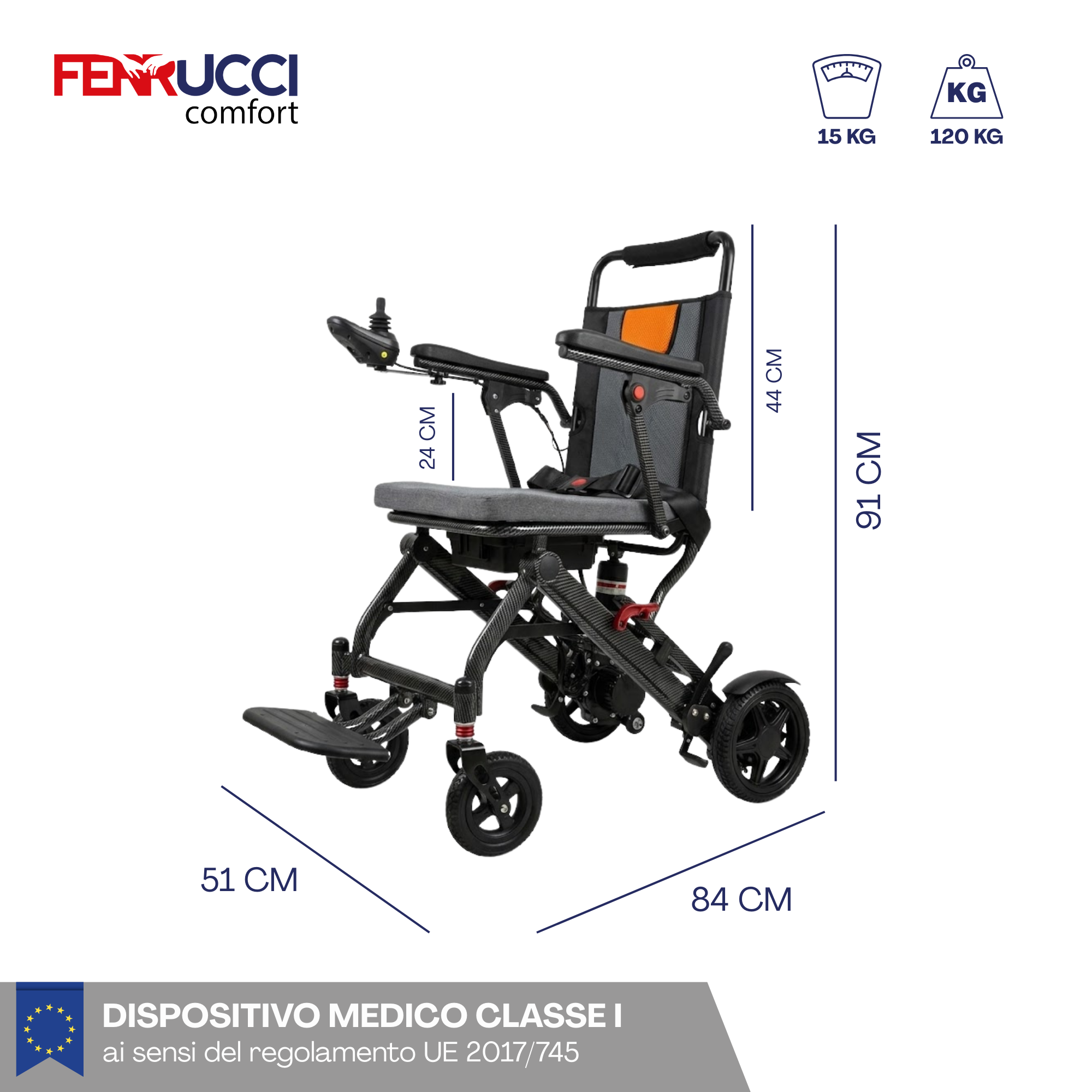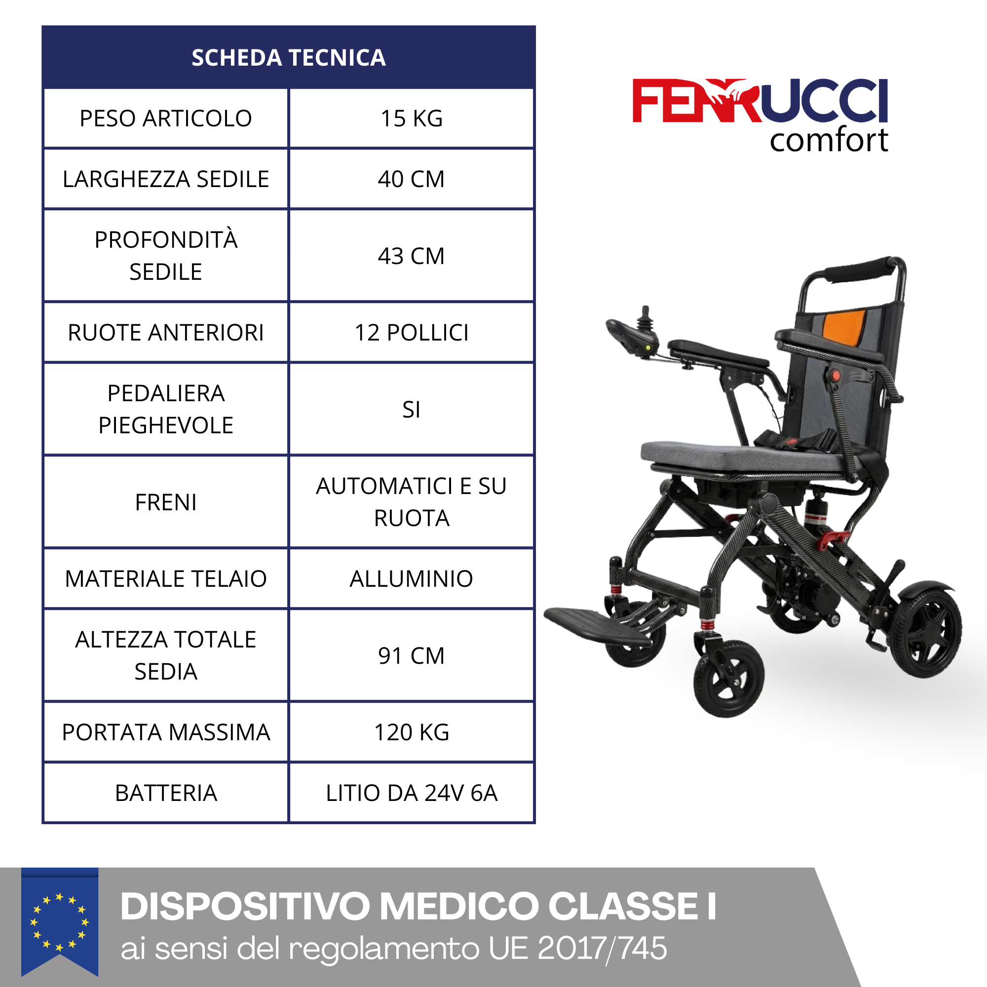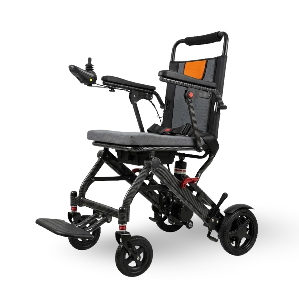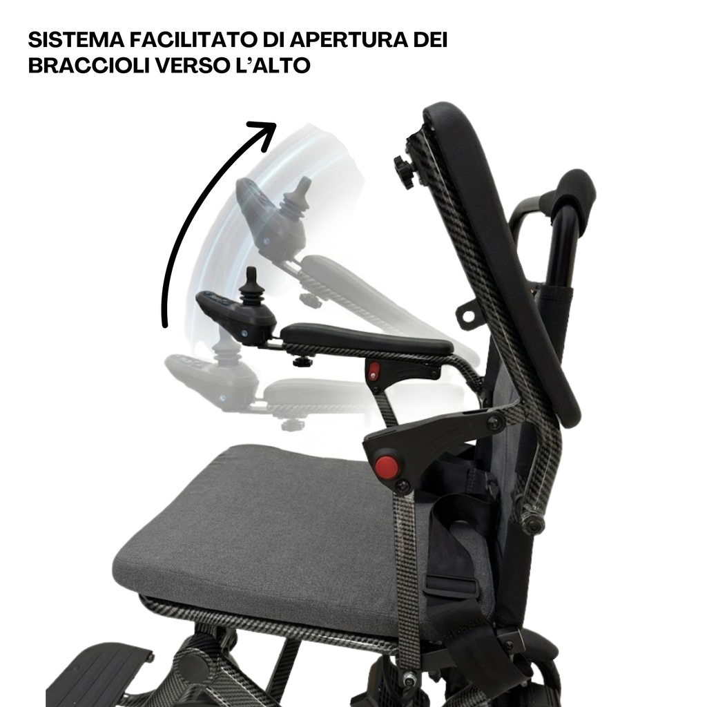 Scopri la carrozzina elettrica pieghevole e da viaggio di Ferrucci Comfort, che ridefinisce il concetto di mobilità personale. Progettata con un focus estremo sulla leggerezza e sulla portabilità, questa carrozzina ti offre l'indipendenza di cui hai bisogno senza compromessi. Perfetta per la casa, i viaggi in aereo o il trasporto in auto, grazie al suo design pieghevole e al peso piuma. La batteria al litio ne consente il trasporto in molti luoghi pubblici tra cui aereo, traghetto, autobus o altro.