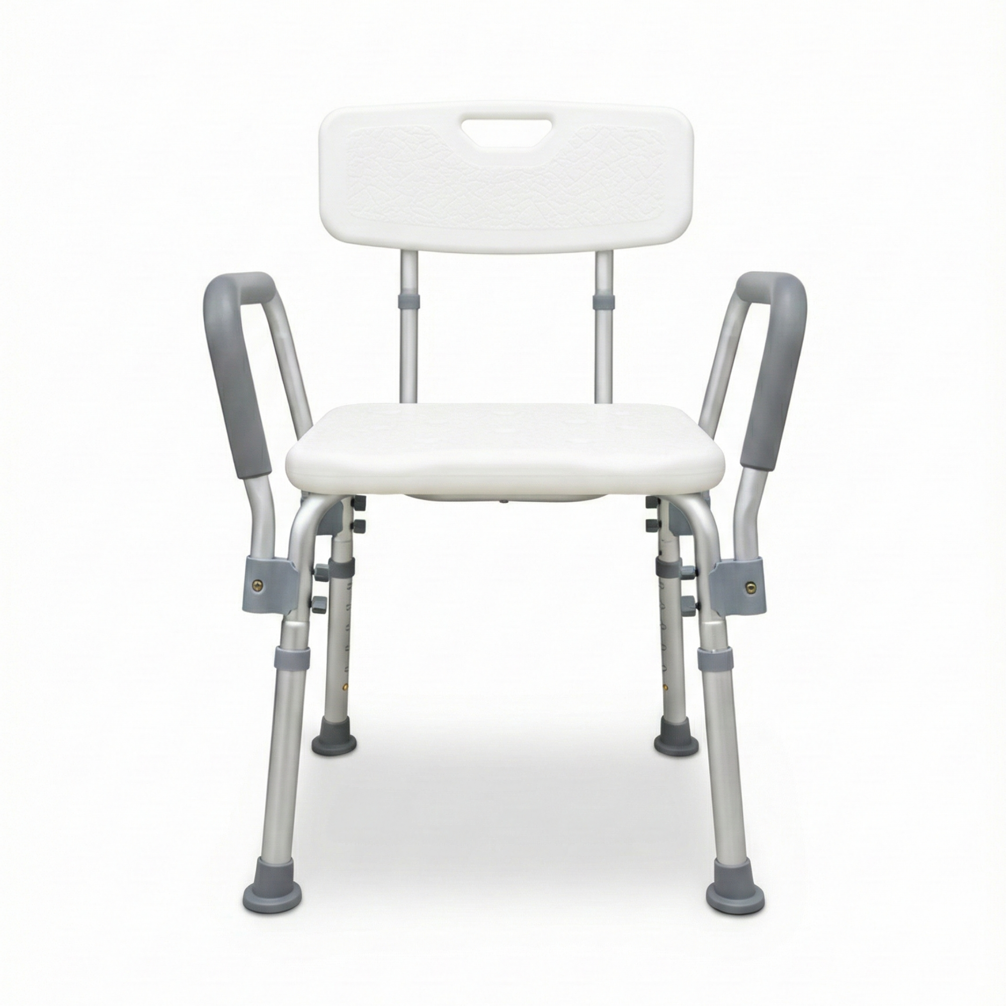 La nostra sedia per doccia è un Dispositivo Medico di Classe 1, studiato per un uso professionale e domestico. I manici ergonomici integrati offrono una presa solida per sedersi e rialzarsi in totale autonomia, mentre lo schienale garantisce una postura corretta durante il lavaggio.
