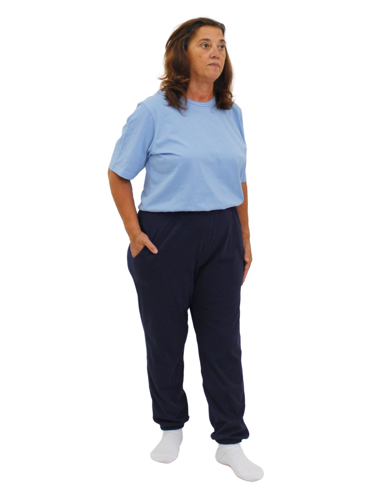 E’ una sorta di “tuta da ginnastica intera”, dotata di cerniera posteriore. Il pantalone è munito di elastico in vita ed è saldamente cucito alla parte superiore, in modo che non vi sia possibilità di accedere al pannolone.